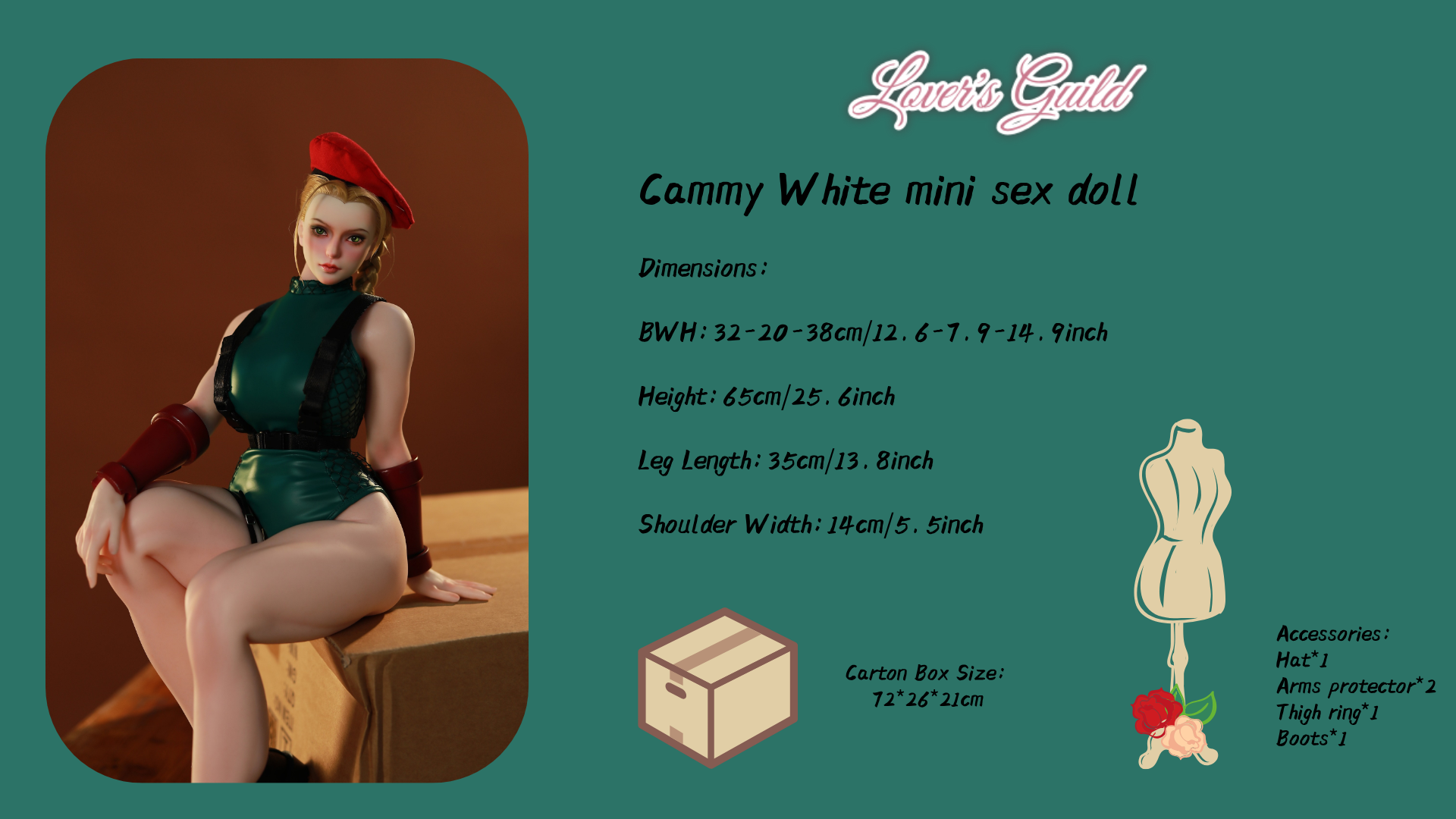 For adults and devoted Street Fighter enthusiasts, introduce the exceptional Cammy White mini adult love doll—an exquisite tribute to one of the franchise’s most iconic warriors. Crafted with premium full-body silicone, this doll offers an incredibly lifelike texture. At the same time, its internal metal skeleton ensures seamless articulation, letting you pose her in any stance imaginable—from her signature "Spiral Arrow" fighting moves to more intimate, personalized positions. A standout detail is her soft, jiggly breasts, enhancing the realism of every interaction and capturing the essence of her dynamic presence.